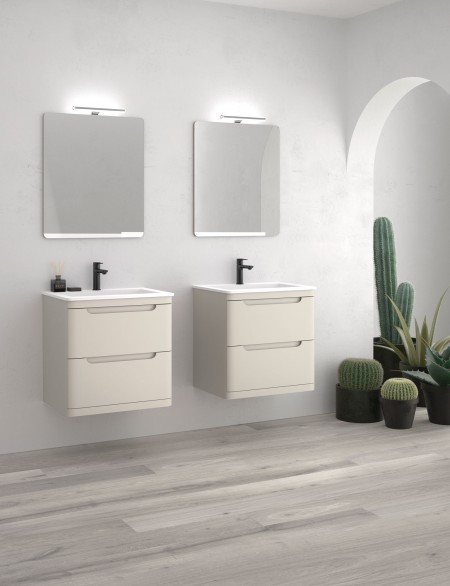 En la Colección Marina, fabricada en PET, material antihuella y reciclable, encontrarás muebles de baño con un diseño de uñero singular con posibilidad de 3 anchos en configuraciones de 2 y 3 Cajones suspendidos o con patas. Elige entre los 3 acabados.